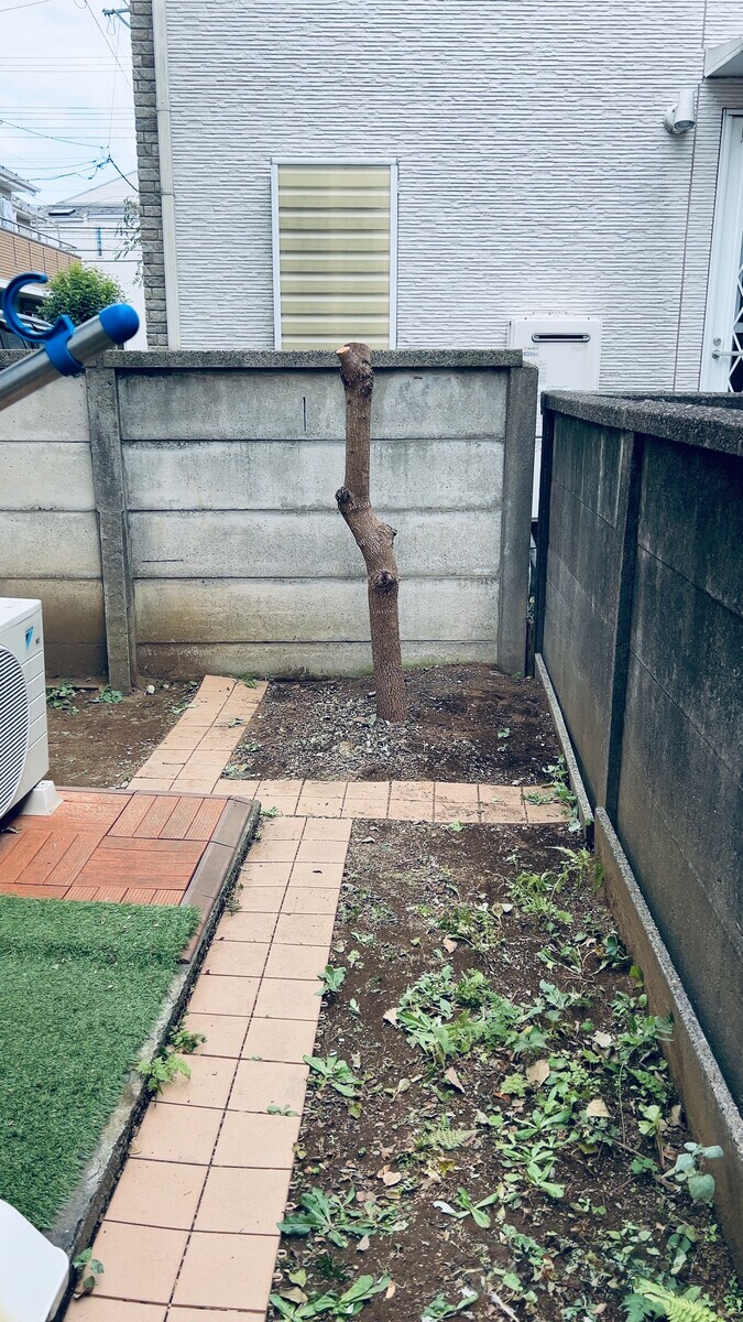 11月 さらば柿の木  この柿の木は10年前隣家を購入したときに庭というにはあまりに狭い土の地面があった。そこに近所のホームセンターコーナンから買った木を植えた。苗木は50cmほどの小さなものだった。桃栗3年柿8年の言葉通り、今年はかなり実がついた。 今年は沢山実ったが、地面にヘタばかりが目に付く。なにかが食べ散らかして残ったヘタをばらまいているようなのだ。夜になるとipadでラノベを読んでいる妻が、くふっくふっとケモノのような声がする。それがきっと食べているんだ、という。そのケモノを見たことはない。ハクビシンなら見たことあるが、そうとも思えない。まさか流行りの熊がここまでくるとは思えない。正体が見えないので、不気味である。残った実を食べてみると渋柿だった。こんなものを食べるケモノがいるのか。 そしてこの隣家を解体リフォーム増築することを計画しているので、2階の高さにまでも伸びた枝をバッサリやることになったのである。